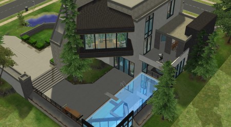 Небольшой дом для зажиточной семьи. Здесь есть всё: бассейн, барбекю, комната для отдыха и развлечений, домашний спортзал, удобная мебель, много произведений искусства. Дом построен на участке размера 4х4. Стоимость 285 тыс. симолеонов.
