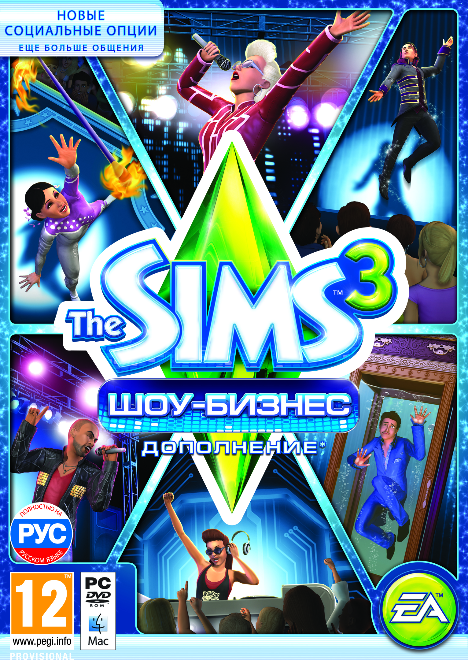 «The Sims™ 3 Шоу-бизнес» – новое дополнение знаменитой игры The Sims 3, в котором персонажей ждет новый город и возможность подняться от самых низов к вершинам успеха и стать знаменитыми певцами, акробатами, фокусниками и диджеями. Игроки смогут наблюдать, как их подопечные добиваются успеха или терпят фиаско, выступая перед другими персонажами в новых заведениях. Для персонажей доступны новые наряды, черты характера, навыки и мечты всей жизни. Можно настраивать сцены и взаимодействовать с такими новыми объектами, как бильярдный стол, караоке и механический бык. Новые социальные возможности позволяют игрокам сообщить о ярких моментах жизни персонажей друзьям и поклонникам The Sims. Новая опция «Симспорт» позволяет отправить персонажа в творческий тур в игру друга. Кроме того, игроки могут выполнять специальные задания и получать награды, которыми можно украсить стену и страницу учетной записи в игре.