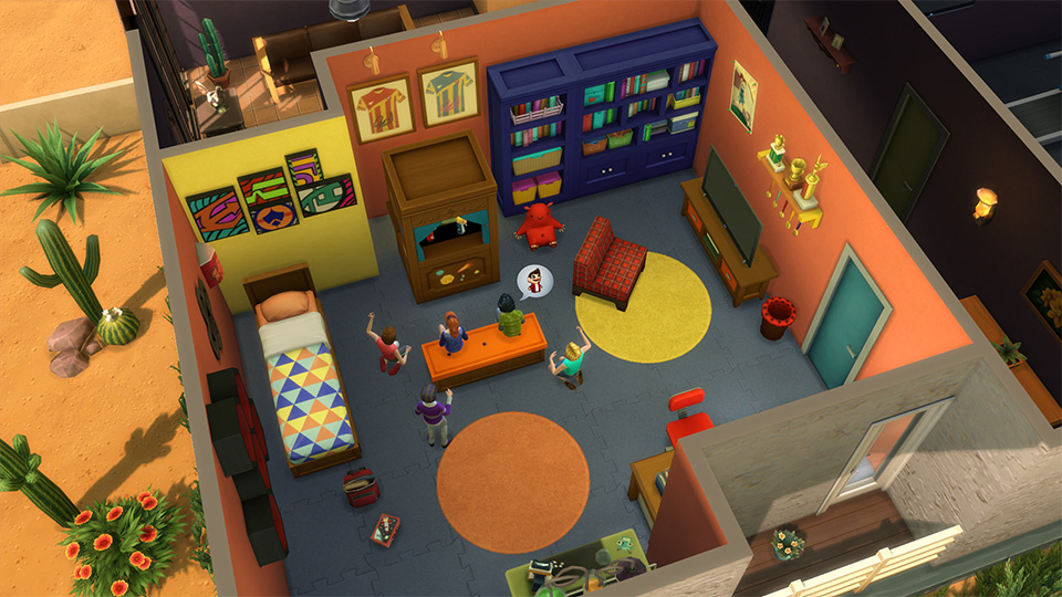 Комната должна быть интересной. У детей полно энергии, поэтому неплохо было бы иметь место, в котором им будет интересно и весело. Добавьте разные игры, чтобы у детей могли играть в своем личном пространстве. Кукольный театр и электронная настольная игра с космическими монстрами, включенные в «The Sims 4 Детская комната — Каталог», идеально подойдут как для игры в одиночку, так и для общения с друзьями и родственниками.