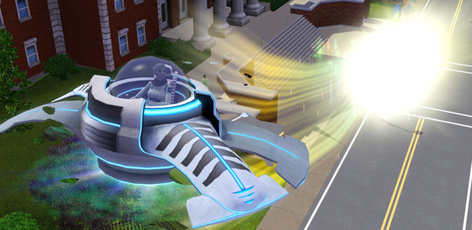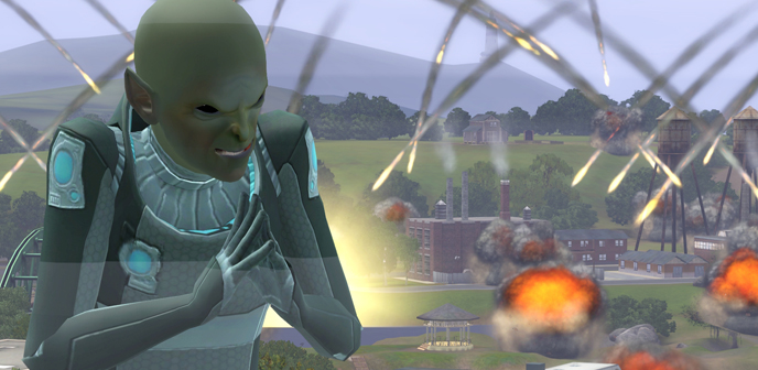 Когда в вашем доме появится пришелец, вы узнаете, что он обладает разнообразными телепатическими способностями! Хотите узнать побольше о своих соседях? Проведите мысленное сканирование и узнайте все о их характере (На картинке Гобиас выглядит особенно привлекательно со своей блестящей лысиной). Сломался какой-то прибор? Почините его при помощи волн мыслительной энергии, и он будет как новенький! В доме давно не наводили порядок? Почему бы не позвать в гости друга и не сделать его своим ментальным слугой? Давайте ему задания по уборке дома, пока вы сами курите бамбук. Заканчиваются наличные? При помощи контролируемых выбросов мыслительной энергии вы можете повышать ценность драгоценных металлов и камней или даже полностью менять их геологический состав, ускоряя естественные процессы нагревания и давления, которые обычно занимают тысячи лет. А вот моя любимая фишка: пользователи, у которых установлено дополнение The Sims 3: Карьера могут использовать пришельцев для изнурительного наблюдения за небом и вызывания метеора, который упадет в указанное место с разрушительными последствиями.