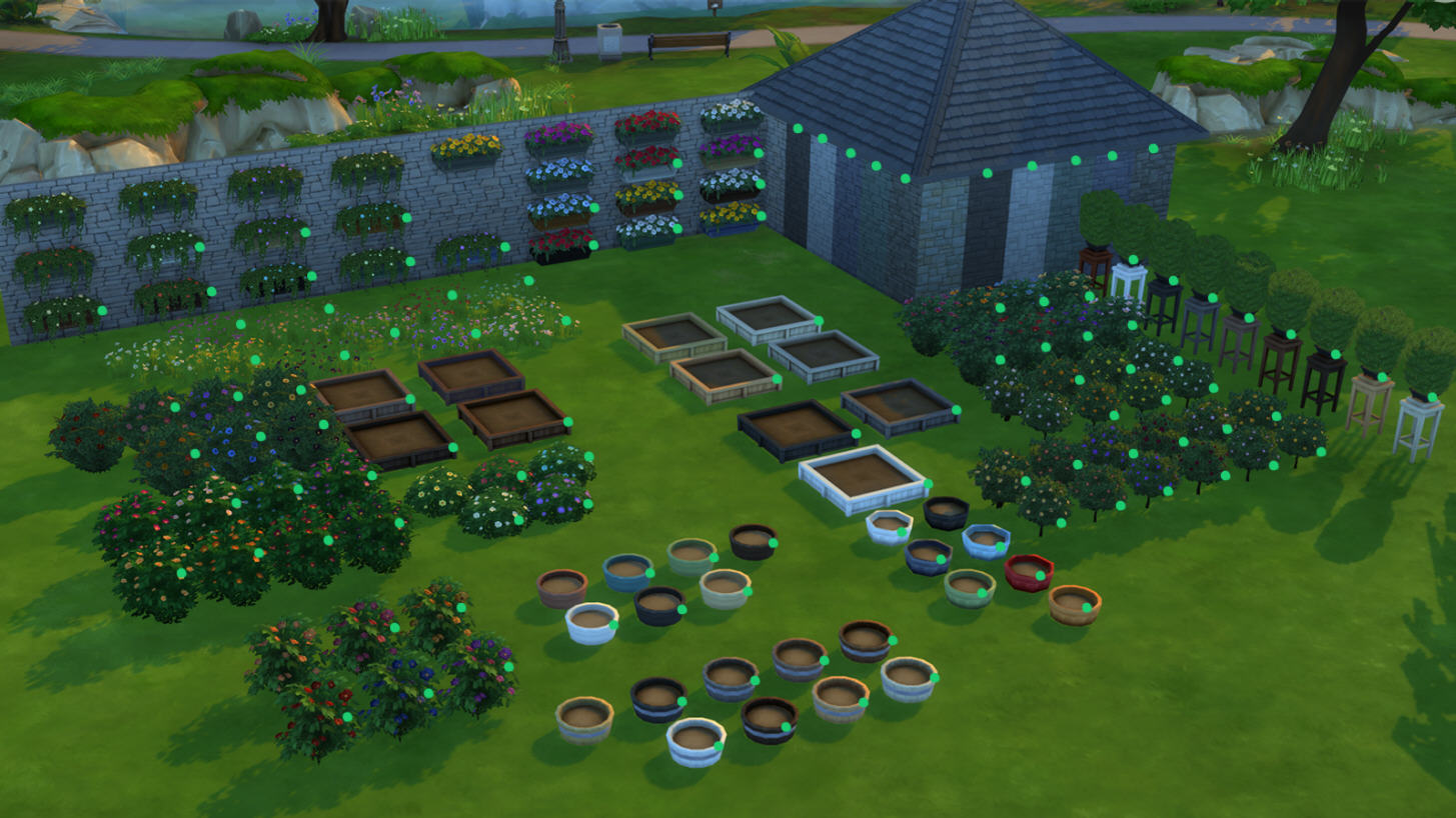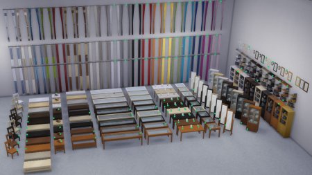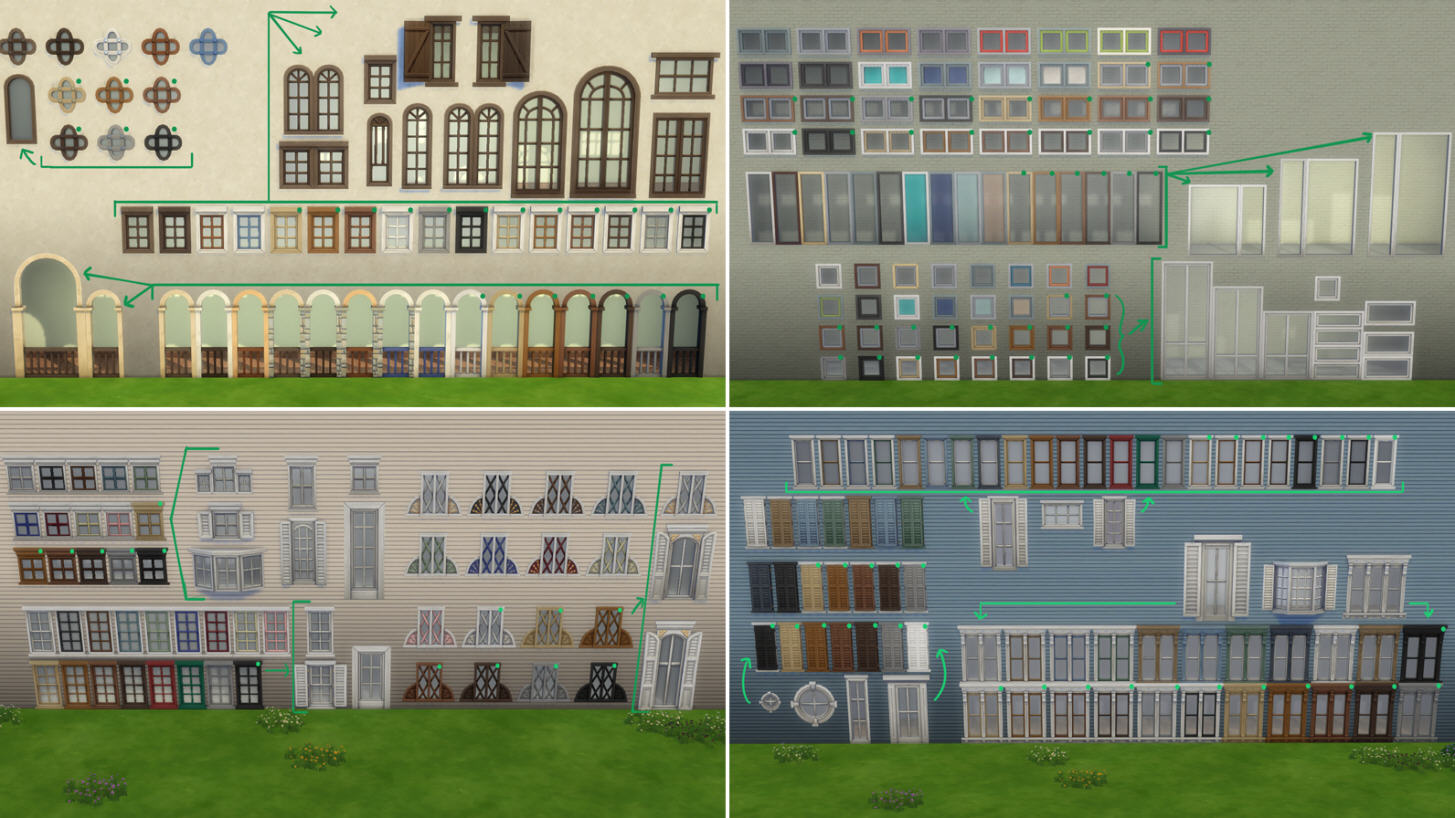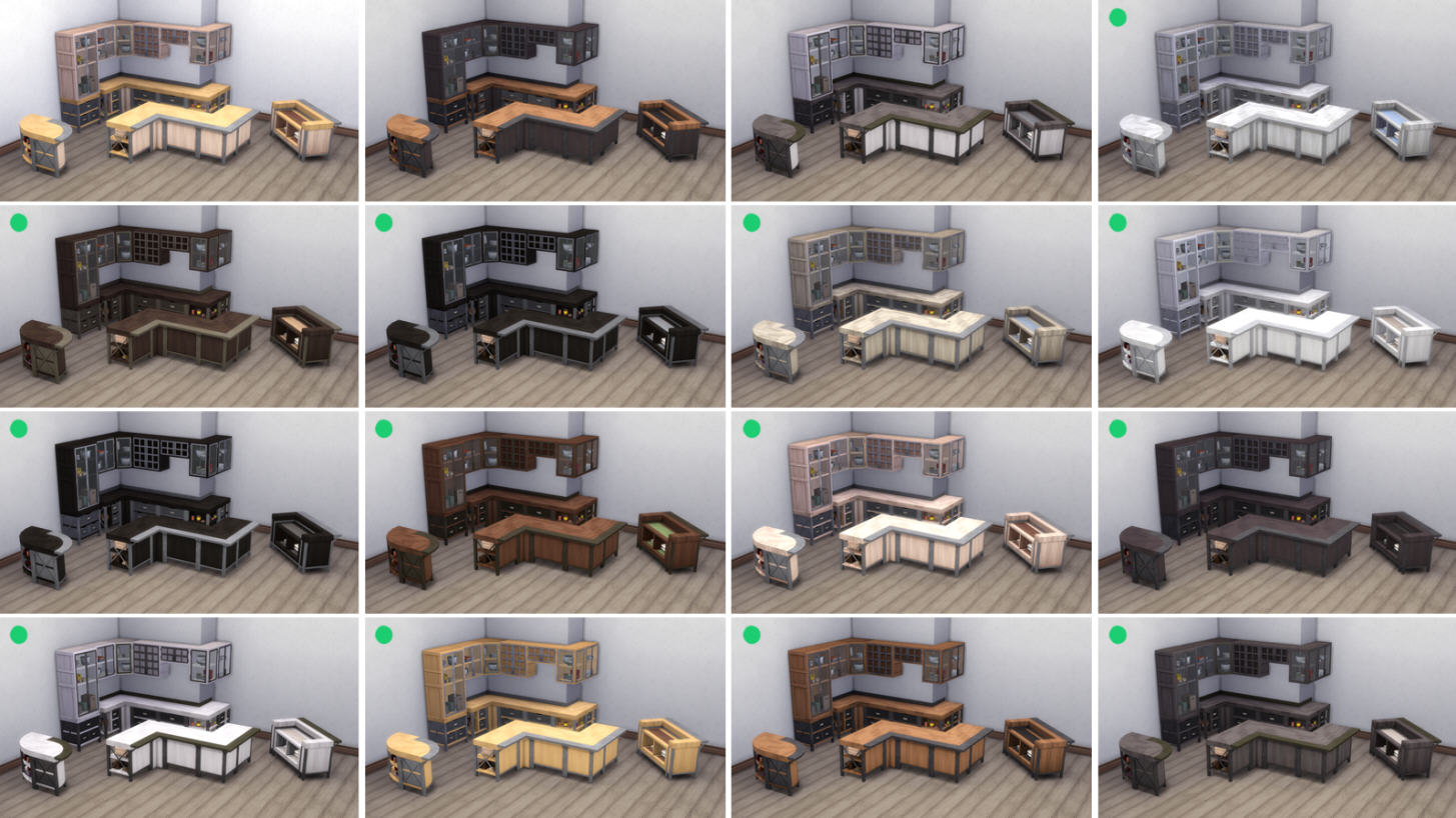 Я перечислю названия и приложу изображения всех предметов, для которых были добавлены новые цветовые гаммы. Огромное спасибо SimGuruBeth за то, что она сделала эти потрясающие снимки экрана! На этих снимках экрана вы заметите стрелки и зеленые точки, которые обозначают новые цветовые гаммы.