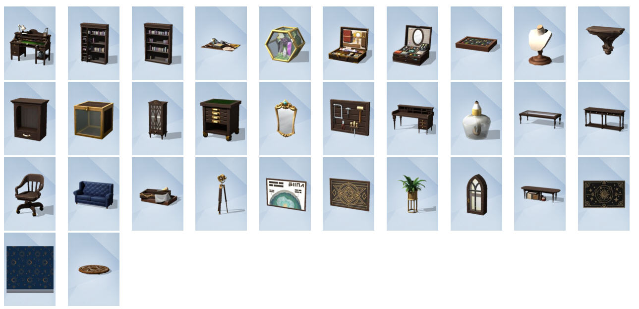 Окружите свои сверкающие произведения атмосферой тайн и загадок. Одежда и мебель из каталога отлично впишутся в уютную мастерскую! А еще в каталог вошел комплект необычных украшений от Arethabee, которые вы найдете в редакторе создания персонажа.