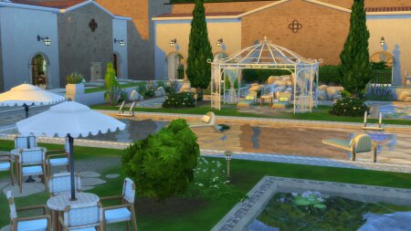 Это секретное местечко идеально сочетает в себе светлые и природные элементы, которые помогут вашим симам обрести душевный покой. Любуйтесь голубыми бассейнами, естественно появившейся патиной и покрытиями как в одиночестве, так и в компании любимых и близких.