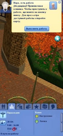 Спокойная жизнь закончилась. Теперь о полноценном отдыхе придётся забыть. Кликаем на опцию Выполнить работу в правом верхнем углу, и ждём дальнейших указаний игры. В моём случае Парамедик отправляется в парк. Нужно сделать прививки. Управиться с этой работой следует за 4 часа.