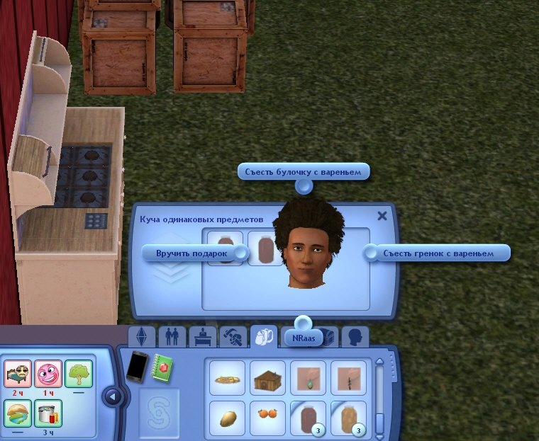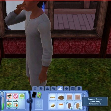 Клик на опцию: Открыть багаж, открывает окно, в которое из рюкзака Сима перетаскиваем к примеру…. 3 плода паприки.