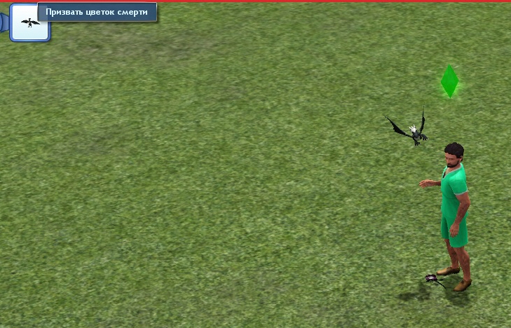 - Призвать цветок смерти – После нажатия на эту опцию дракон взлетит над Симом-хозяином, и с высоты бросит к его ногам Цветок Смерти.