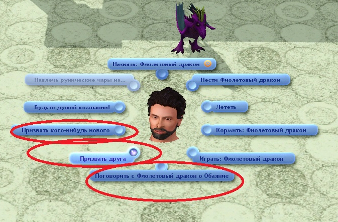 Как и в случае с призрачным проклятием, для действия этих опций нужен какой-либо Сим, пришедший в гости к хозяину красного дракона, или встреченный где-то на любом из общественных участков.