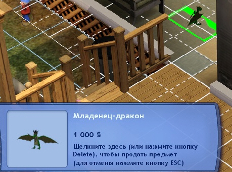 - Если выбрать опцию "Нести»- Дракончик садится своему хозяину на руку, и Сим несёт его, куда игроку нужно.