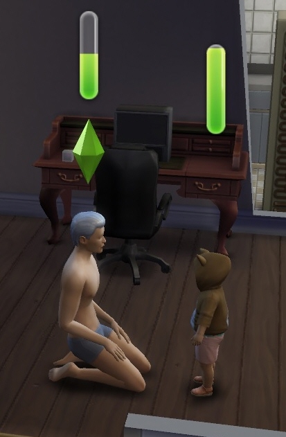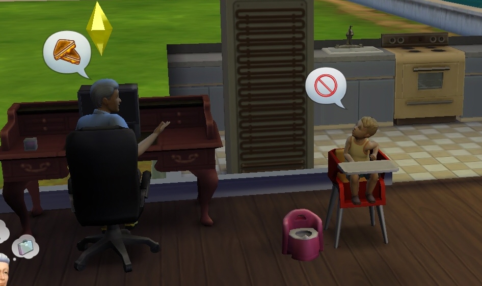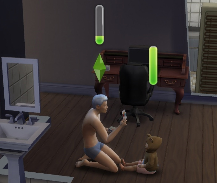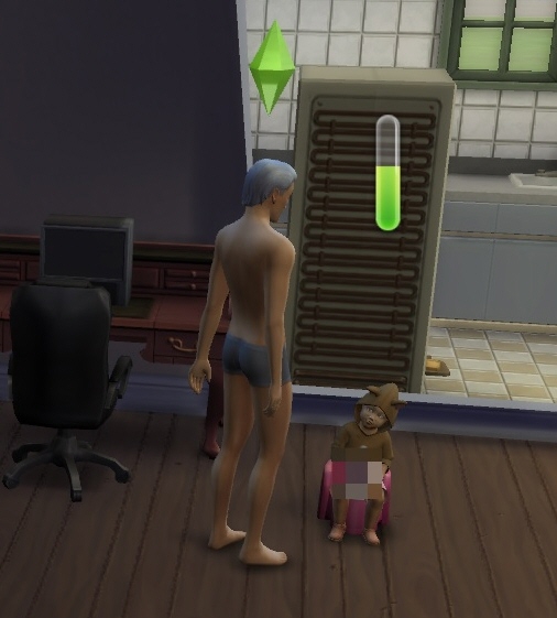 Пузырьки приобретения навыка будут у обоих. Только у отца навык будет воспитания. Он даже похвалит малыша за усердие. В отличие от Симс 2 и Симс 3 горшок опорожнять не нужно.