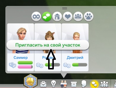 Когда младенец станет малышом, отец может пригласить его к себе в гости. Для этого в контактах нужно нажать на портретик малыша. Появится опция: