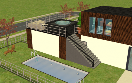 Современный двухэтажный дом. В наличии две спальни и два санузла. Полностью обустроен. Имеется гараж и бассейн. Дом построен на участке размера 3х3. Стоимость 100 тыс. симолеонов.