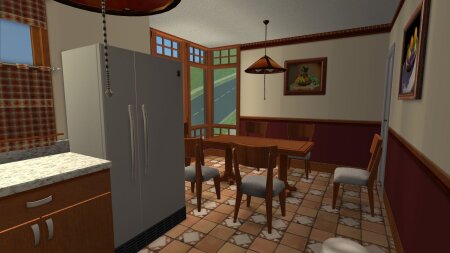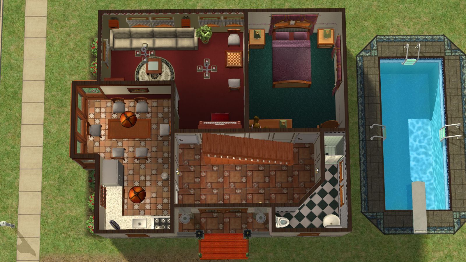 Двухэтажный дом. Подойдет для средней семьи - имеется три спальни и два санузла. Дом построен на участке размера 2х2. Стоимость 77 тыс. симолеонов.