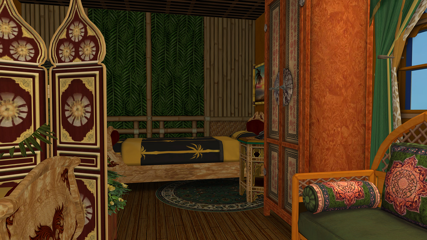 Отель с большим количеством развлечений для ваших симов. Помимо этого здесь имеется 7 комнат для аренды стоимостью от 1020 до 1586 симолеонов в сутки. Персонажи могут хорошо провести свой отпуск, играя в бильярд, карты, дартс. На участке есть уютный ресторанчик. И, конечно же, не стоит забывать про пляж и море. Размещается на участке размера 5х6.