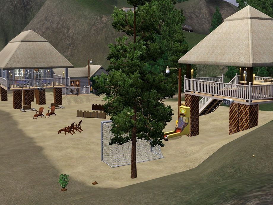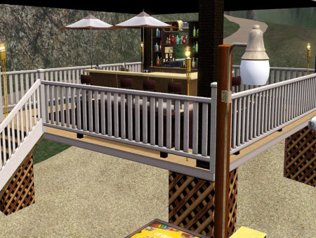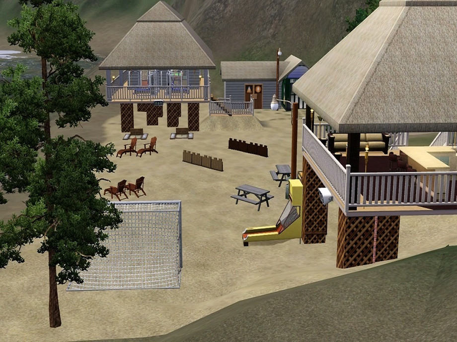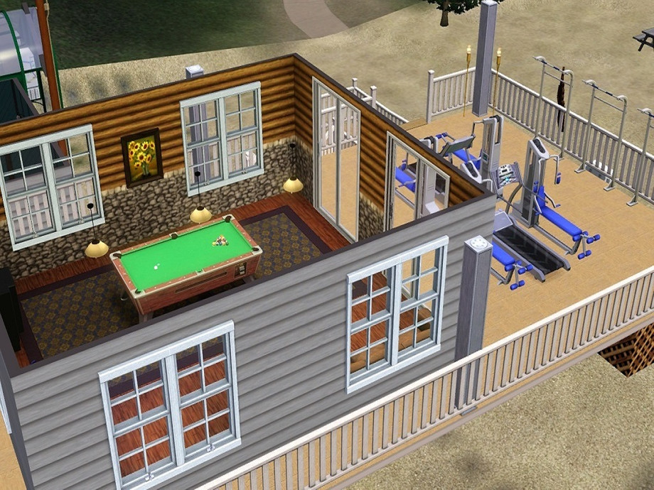 Ваши симы могут позагорать на новом пляже, поиграть в бильярд с друзьями, выпить что-нибудь, укрепить мышцы на тренажерах, или просто насладиться закатом со своей второй половинкой. Построен на участке 25х25.