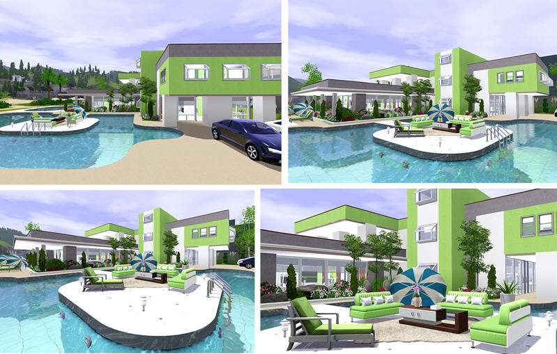 Компактный современный двухэтажный дом для небольшой семьи. Размещен на участке 40х40. Имеется красивый двор с бассейном.
