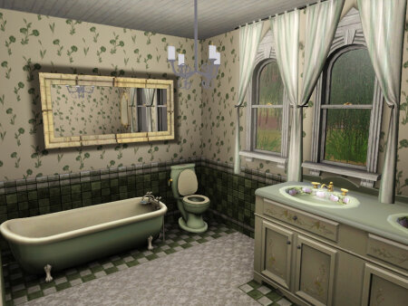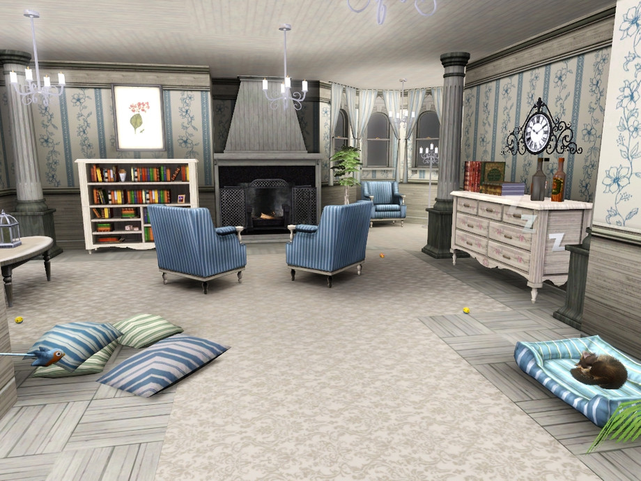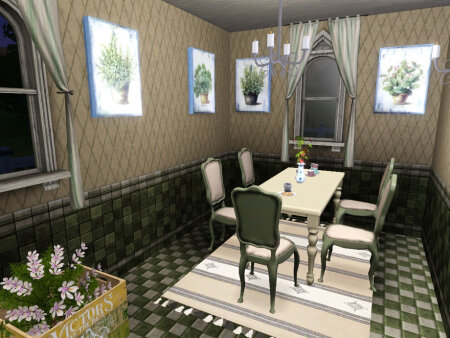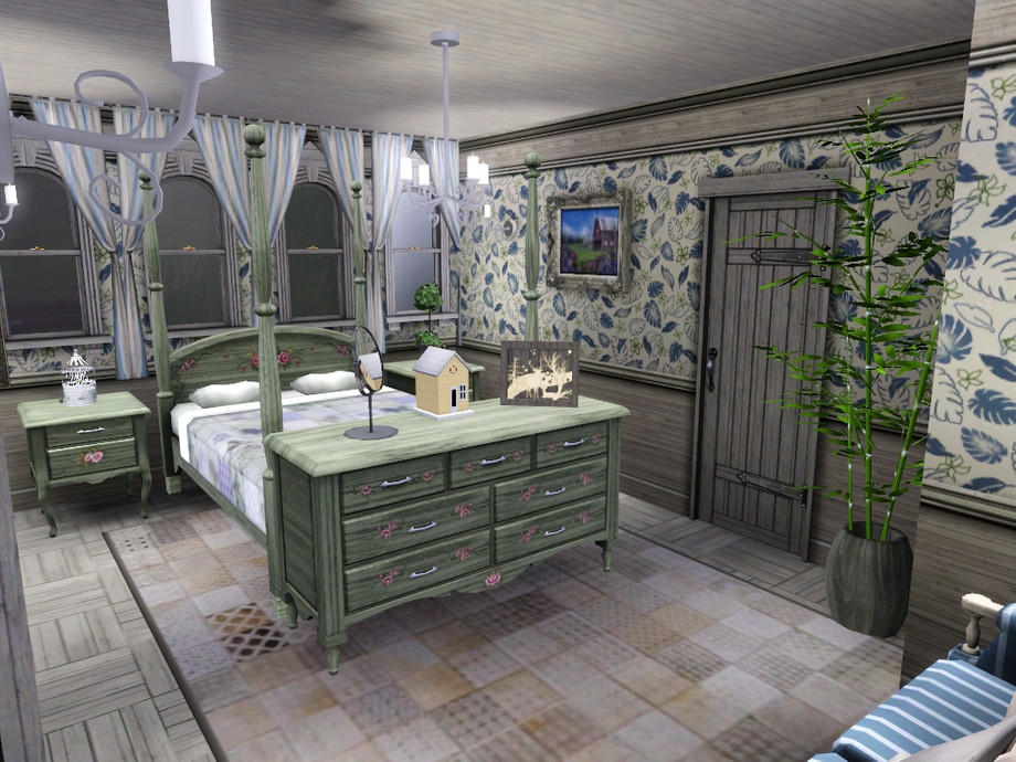Коттедж для одинокого сима или пары. На первом этаже: кухня со столовой, гостиная, санузел. На втором этаже: спальня, кабинет, санузел. Есть красивый большой сад с ручьём вокруг дома. Построен дом на участке 30х30. Стоимость 67 тыс. симолеонов.