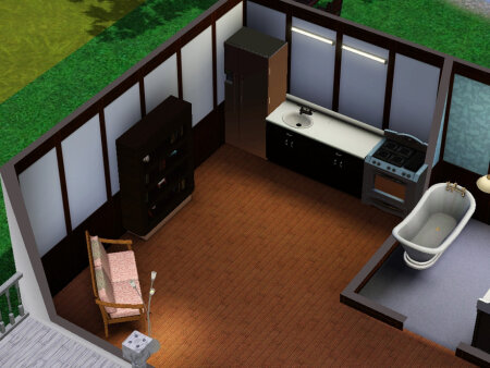 Простой стартовый домик для молодой пары или одинокого персонажа. Имеется одна спальня, один санузел, а также кухня совмещенная с гостиной. Построен дом на участке 30х20. Стоимость 16,5 тыс. симолеонов.