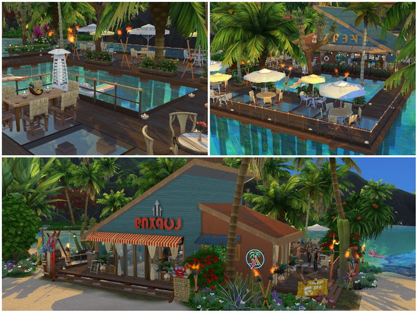Ресторан на пляже с прекрасными видами. Пусть ваши симы наслаждаются ужином во время красивейшего заката!