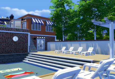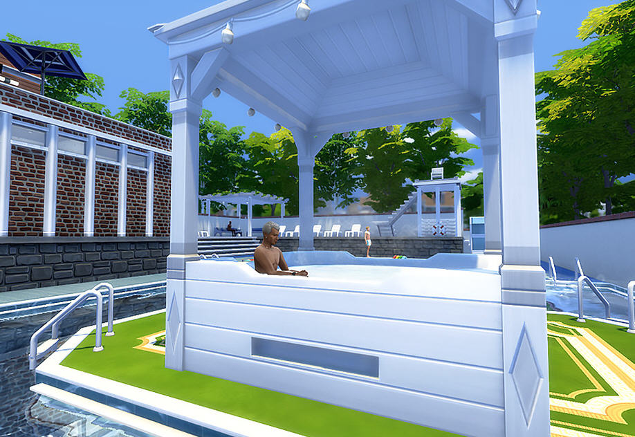 Отличное место для всей семьи. К услугам ваших симов: бассейн, тренажеры, джакузи. Построен на участке размера 40х30.