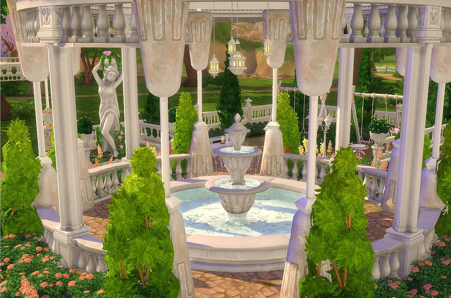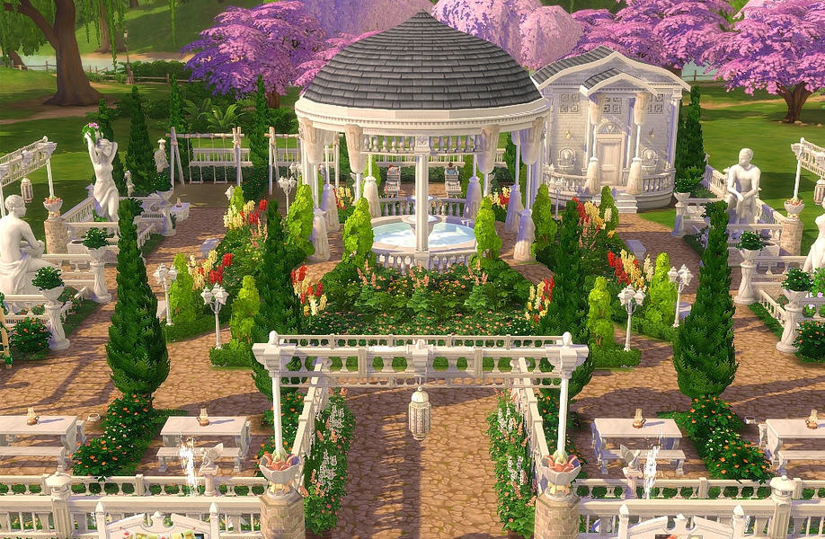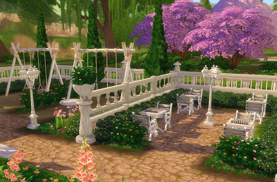 Очаровательный парк, где ваши симы могут отдохнуть вместе с детьми и питомцами. Построен на участке размера 40х30.