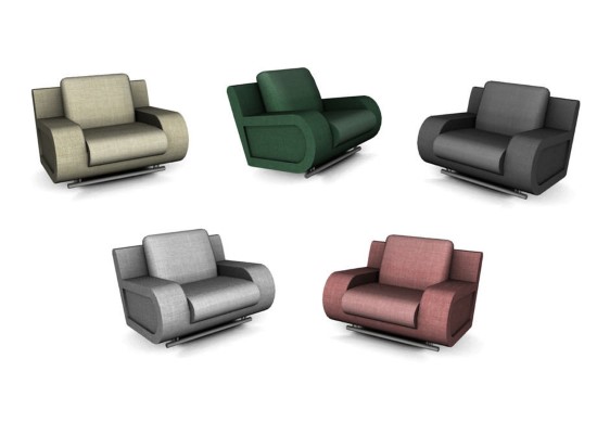 Кресло в современном стиле с хромированными металлическими деталями, обитое тканью, в пяти различных вариантах